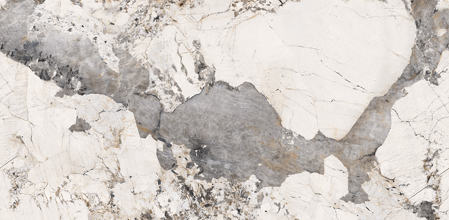 Andarin Ash is a surface that immediately captivates with its contrasts. Crystal textures rising from the center of gray tones combine with off-white, beige, and light brown veins to give the surface both dynamism and elegance. This design language draws inspiration from mineral formations found in nature. Each slab is like a cross-section of a geological tableau — timeless, natural, and unique.