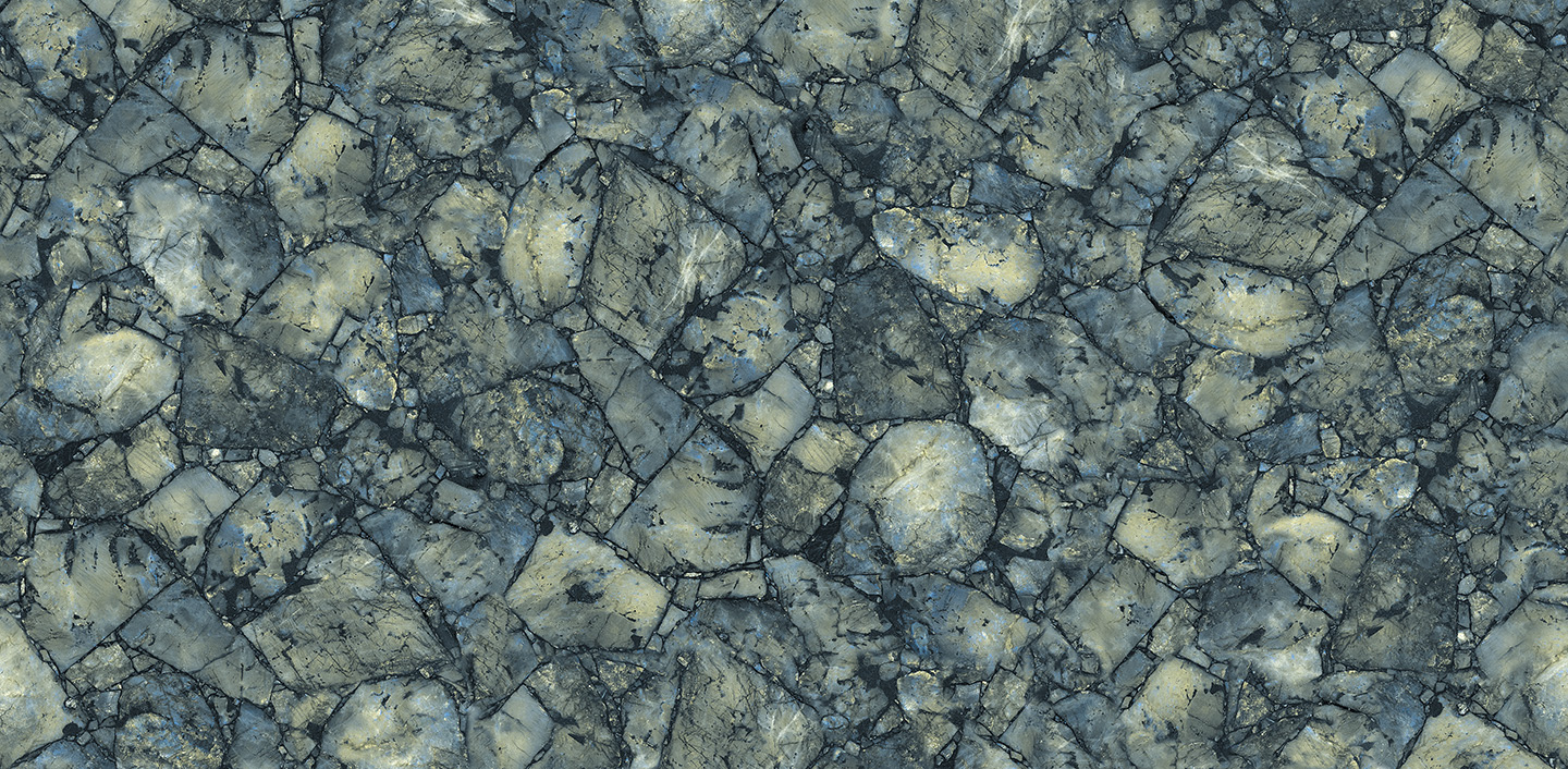 Offering a deep and striking aesthetic, Agalith Blue stands out with its combination of blue hues in varying tones. The randomly scaled patterns on the surface, interspersed with touches of beige and white, lend spaces a sense of movement and sophisticated depth. Produced with Arteo technology, this quartz slab unites the richness of stone's color palette with a contemporary design sensibility.