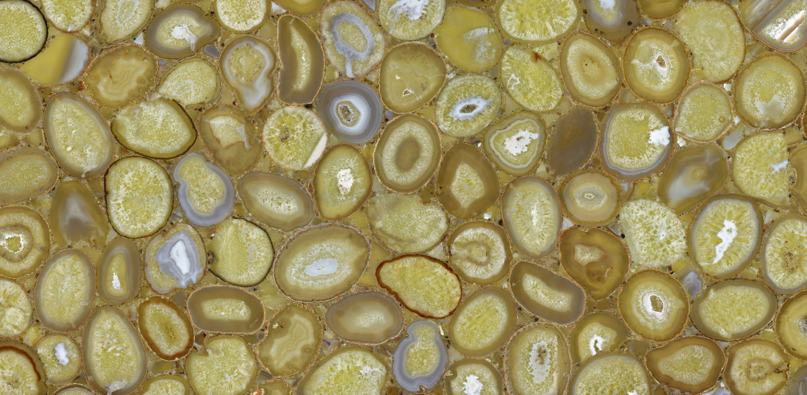 Nidusa takes its name from a lost ancient city. The stone's inner structure appears to have formed layer by layer throughout history; at its center lie the warmest tones of yellow, surrounded by crystalline reflections. Its circular form recalls one of nature's most ancient symbols — cyclicality. Its contact with light whispers that this stone carries a story stretching from the past to the present.
