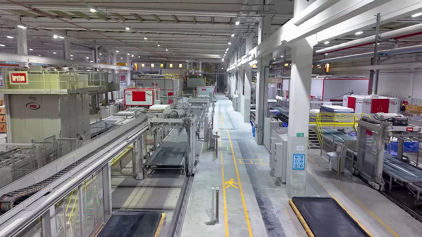 • 2017 yılında, 65.000 m²’lik modern üretim alanında (25.000 m²’si kapalı) faaliyete geçen birinci fabrika, Bretonstone® teknolojisinin en gelişmiş versiyonlarıyla donatılmış olup yıllık 1.200.000 m² üretim yapmakta.